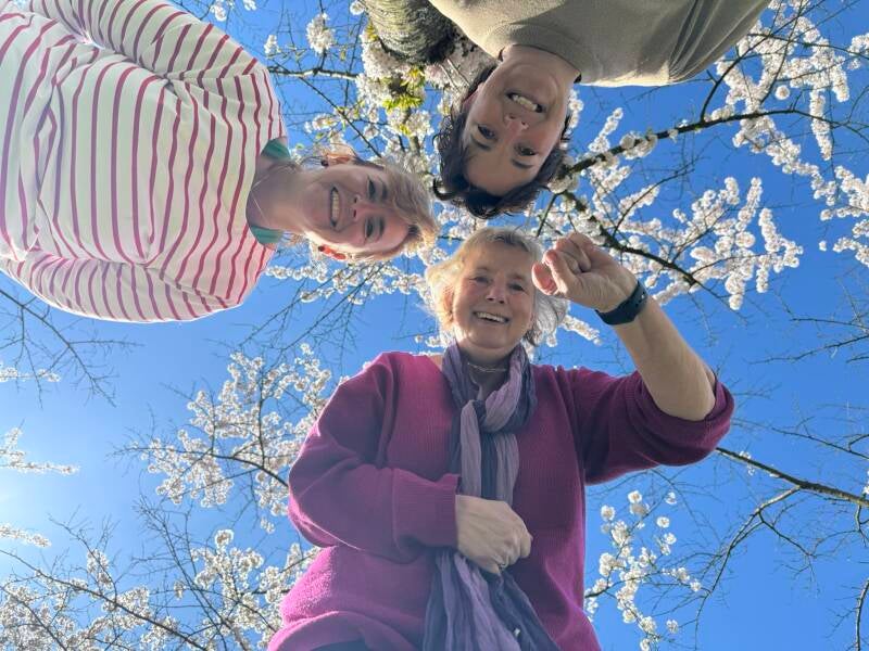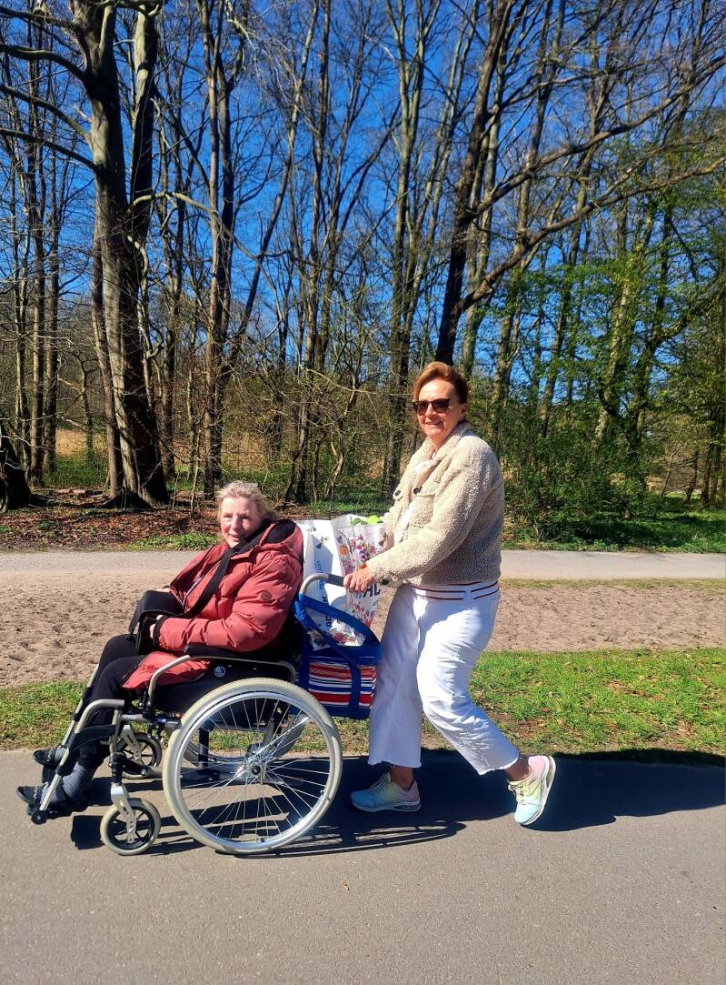 Tja 1 april, Angelique komt mij ophalen en als extra verrassing zitten Wim en Monique ook in de auto. Ik weet nog steeds niet waar we naar toe gaan. De leuke lieve nichtjes zeggen mooi niets. Wim rijd en we gaan naar het Amsterdamse bos waar de bomen volop in bloei staan. Wat een pracht. Er worden heel veel foto’s gemaakt en met deze twee meiden zoveel lol gehad. Angelique had overal aan gedacht, zelf een rolstoel kwam uit de auto, ik kan nog niet zover los lopen dus dit was een prima oplossing. Heerlijk rondje bos gedaan en halverwege kwam de rijkelijk gevulde picknick mand aan de beurt, smullen maar. Wat een heerlijke verrassing was dit, dank jullie wel …