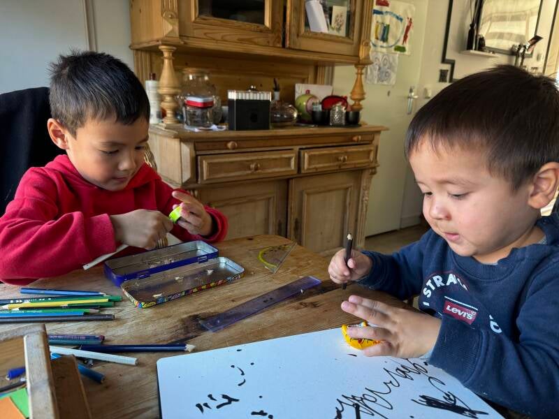 Marja en ik gaan eerst een mooie krans maken, een workshop, met 4 andere dames dus 6 kransen en allemaal verschillend. We blijven natuurlijk ook genieten van foto’s maken en oppassen op mijn kleine boefjes Nikai en Leroy.