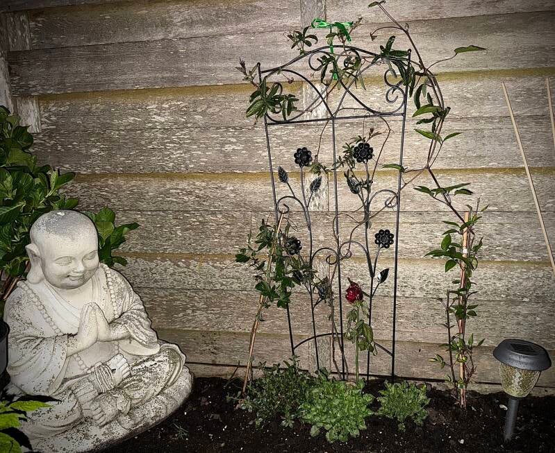 Toch ook maar weer een keer met Marja naar Intratuin, had het al paar keer afgezegd vanwege teveel pijn maar nu dan toch maar even doorbijten. Ik wilde planten halen die ik dan bij het rekje wat ik van Nico heb kon neerzetten. Zijn lievelingsbloemen, een Kamperfoelie en een Clematis, dat moet mooi gaan worden toch. De boeddha die ik jaren terug van hem heb gekregen als dank voor mijn hulp zit er ook bij. Nico’s plekje in mijn tuin. En nog wat planten en een nieuwe Pannenkoekenplant want mijn ouwe heeft mijn uitstapje van 4 weken niet overleefd. Krijg van Angelique een appje dat ik 1 april van 11.00 tot 14.00 uur vrij moet houden voor een verrassing en nee het is geen grap. Ben benieuwd en spannend hoor ..
